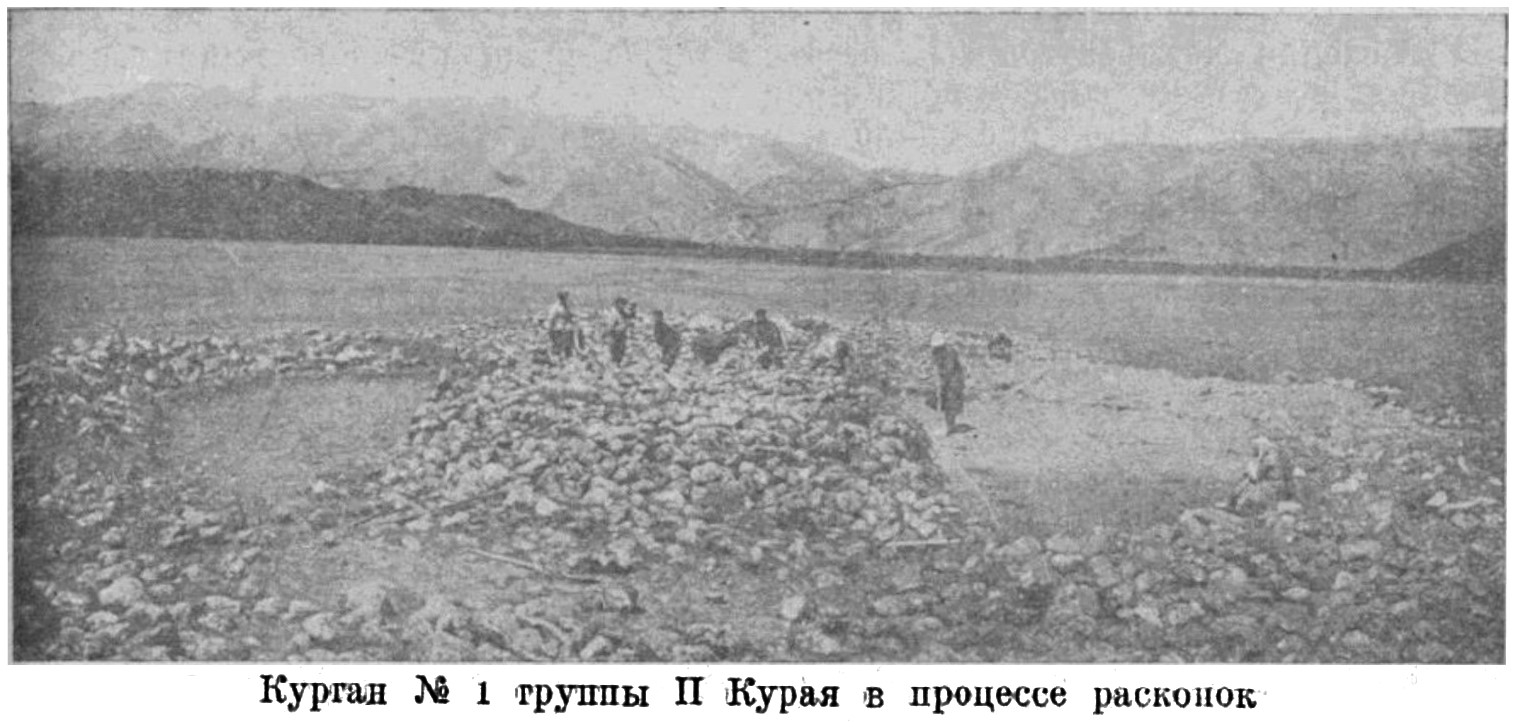Особенно широкие работы в окрестностях Курая диктовались также и тем, что этот район, замечательный в природном отношения, богатый самыми разнообразными памятниками древности и прорезанный в ряде мест оросительными древними каналами, несомненно был более связан с югом, со степями верхней Чуи, сливающимися с пространствами Северо-западной Монголии; он оказался в этом отношении наиболее южным из доступных экспедиции пунктов для раскопки по количеству об’ектов и подходящим по возможности организации работ. Тему о связях между Алтаем — этой весьма своеобразной культурно-исторической провинцией — и центрально-азиатским Югом нельзя не считать одной из первоочередных задач нашей науки.