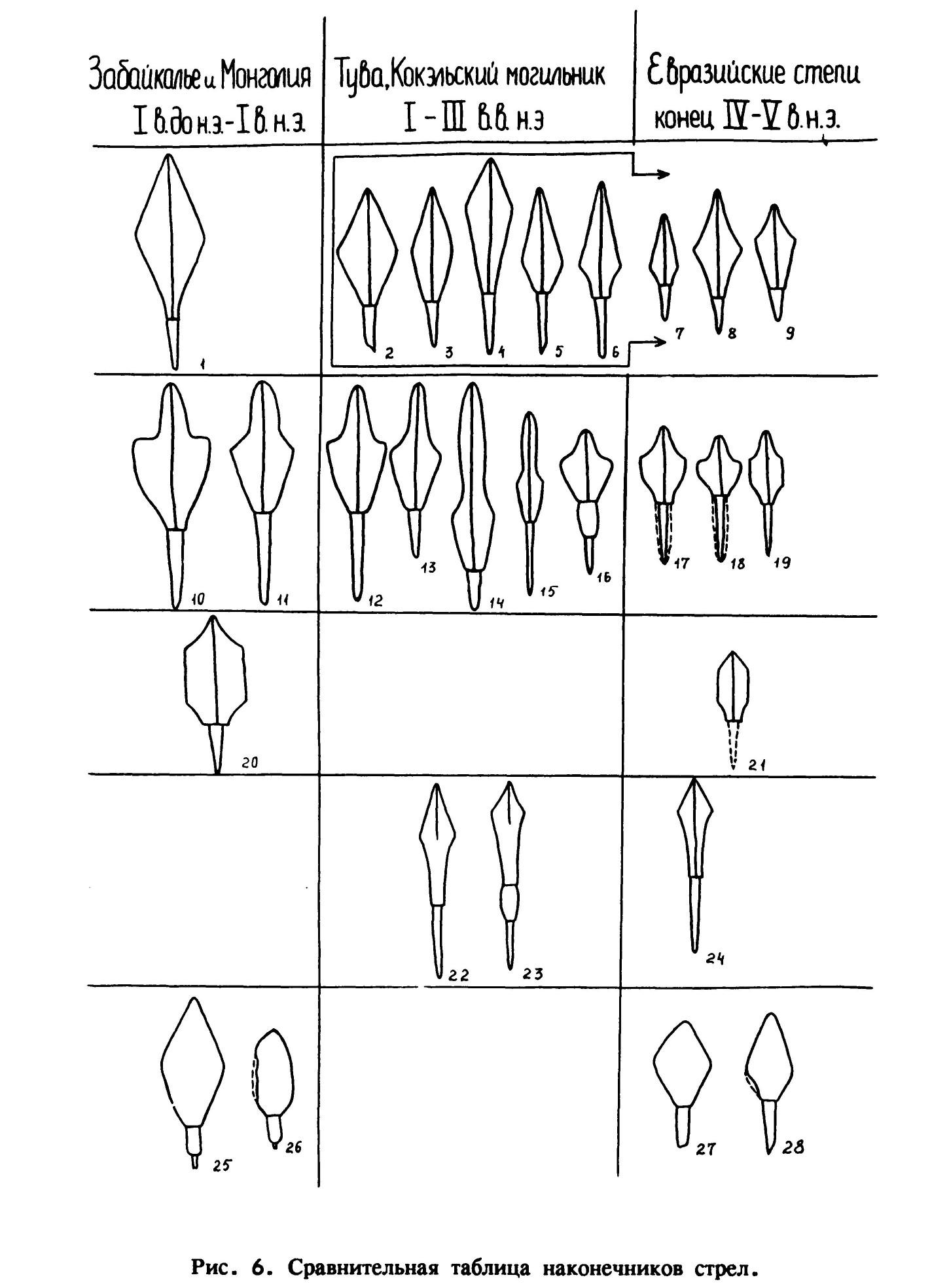 ^ Рис. 6. Сравнительная таблица наконечников стрел.(Открыть Рис. 6 в новом окне) |