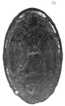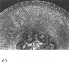 Глубокие ложбины, делящие поле борта подноса, тоже неиранские. Они встречаются в XII-XIII вв. на украшенных чернью серебряных сосудах армянского государства на юге Малой Азии — Киликийского царства (Банк, 1978, с. 58-61; Маршак, 1985, с. 139-144; Marschak, 1986, S. 116-119, Аbb. 152-154, 157), тесно связанного с крестоносцами Сирии, и в Западной Европе (например, кат. №№ 72, 74).