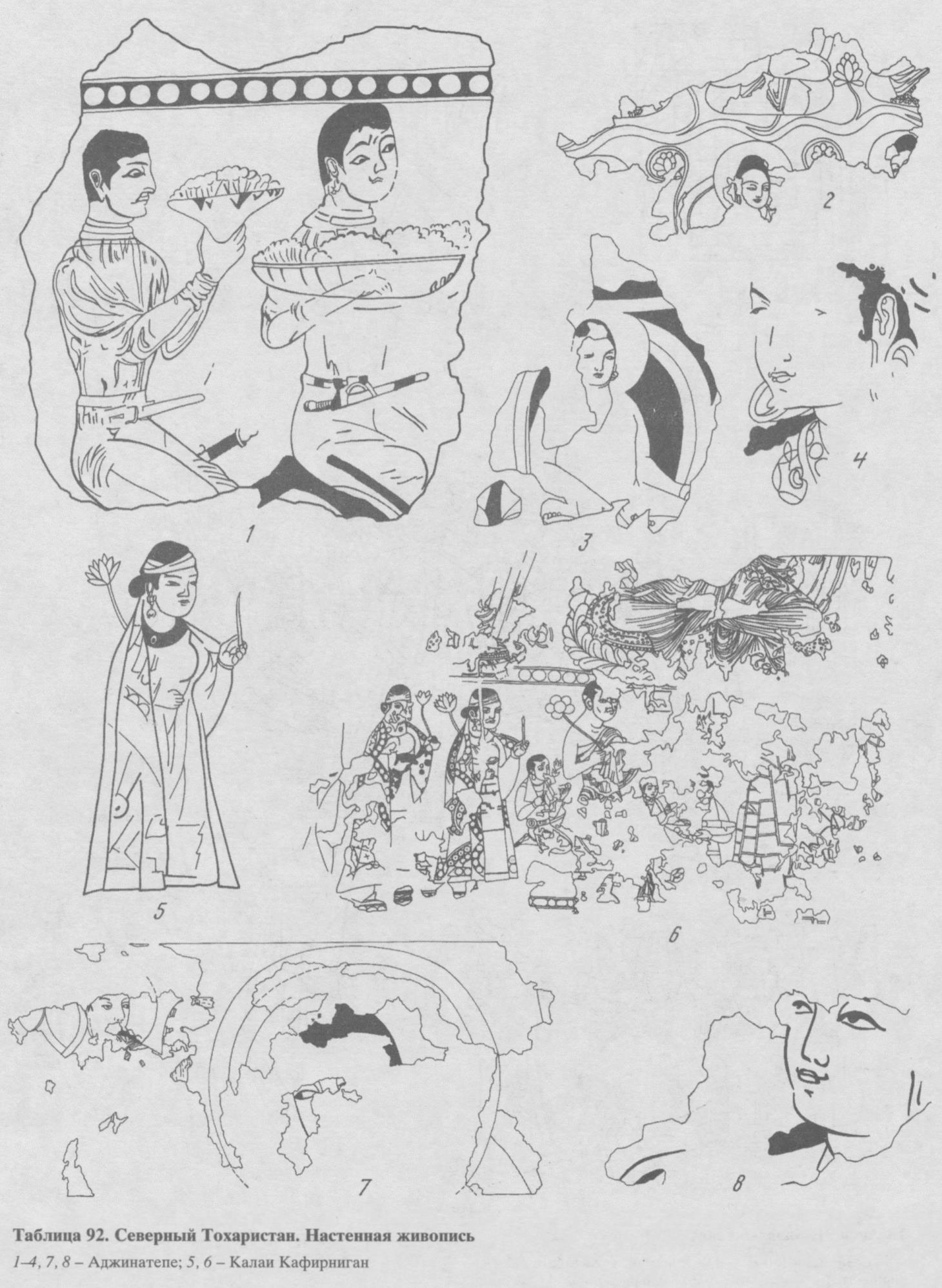 ^ Таблица 92. [с. 336]Северный Тохаристан. Настенная живопись.1-4, 7, 8 — Аджинатепе; 5, 6 — Калаи Кафирниган.