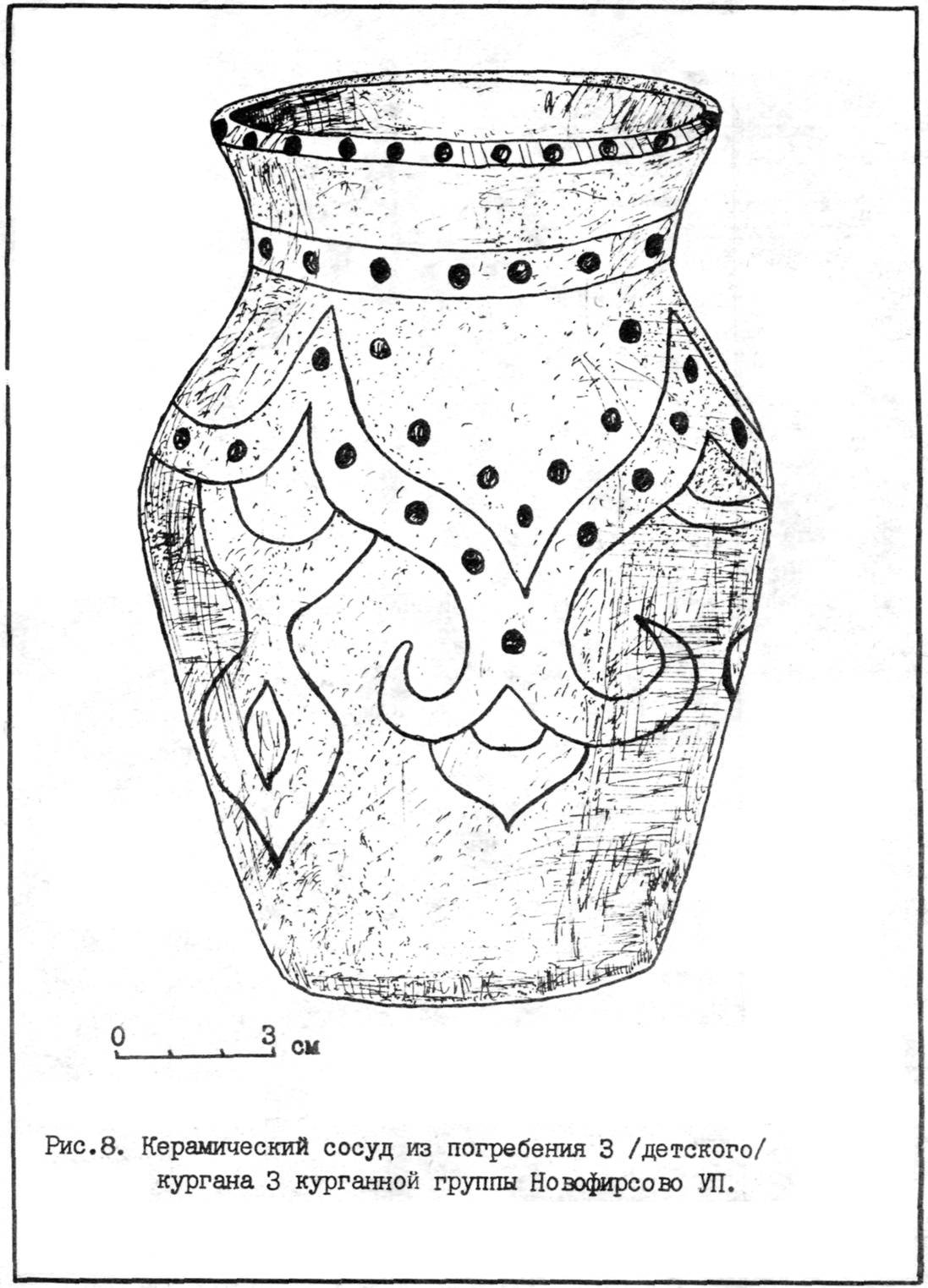 Рис.8. Керамический сосуд из погребения 3 (детского) кургана 3 курганной группы Новофирсово VII.