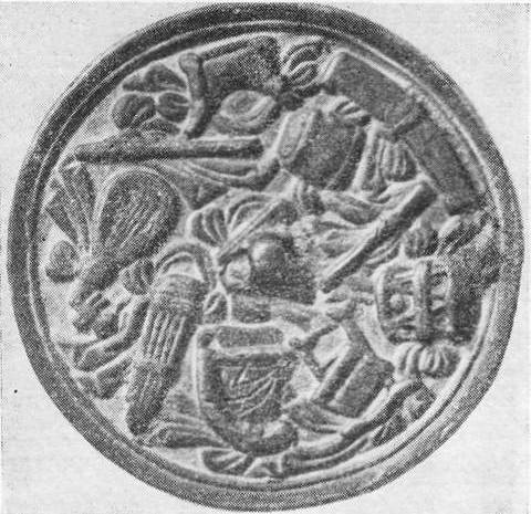 Бронзовое зеркало с изображением музыкальных инструментов.(Открыть в новом окне) |