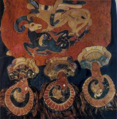 Переработка заимствованных мотивов, начавшаяся с возникновения скифо-сибирского звериного стиля, к V в. приводит к частичной замене образов таких животных, как лев или пантера, хорошо известным в Средней Азии и Сибири тигром или же повсеместно распространённым волком с отчётливо выраженными признаками именно этих животных.
