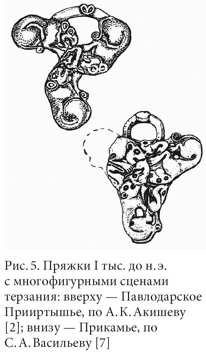 Рис. 5. Пряжки I тыс. до н.э. с многофигурными сценами терзания:
