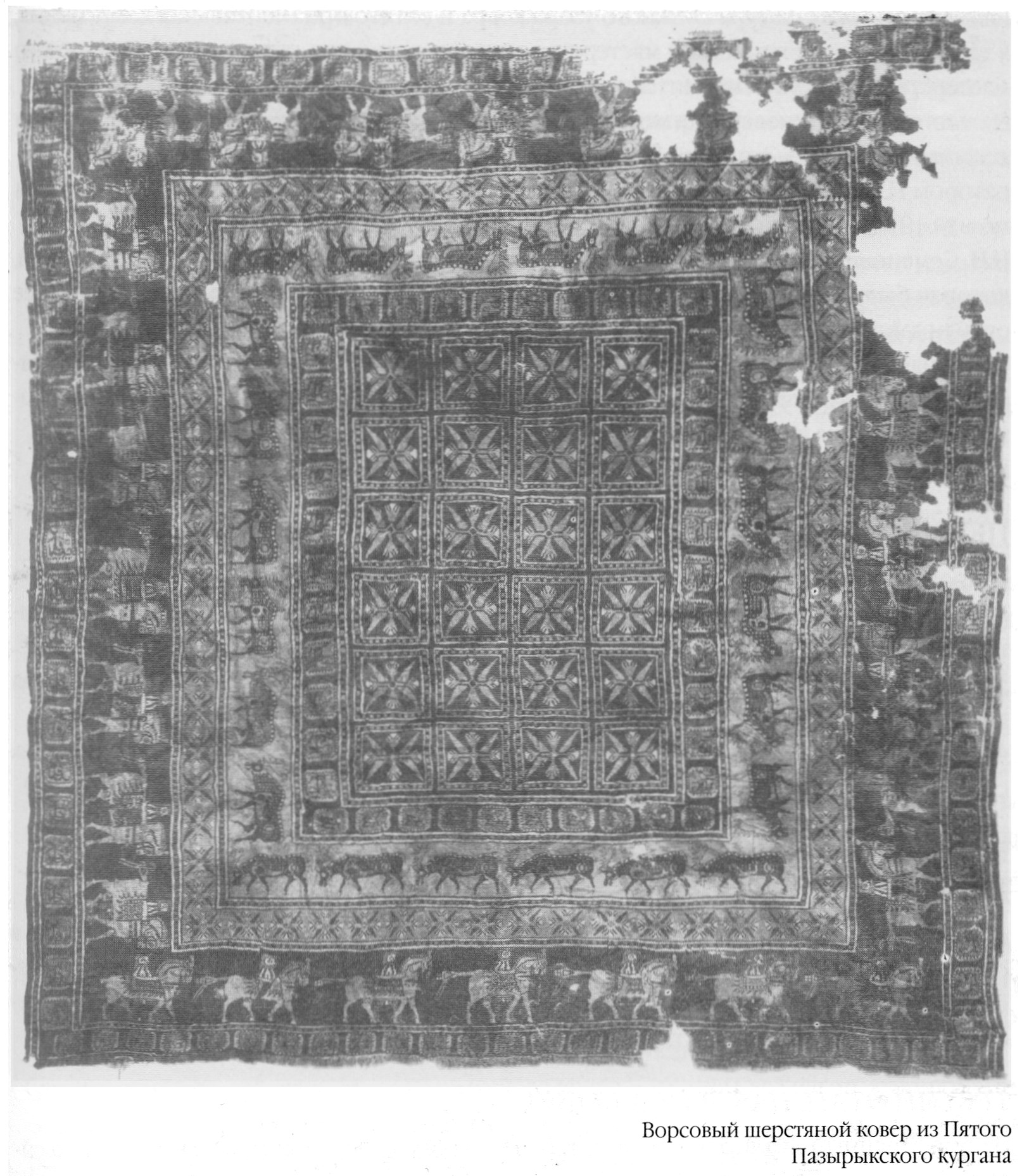 Ворсовый шерстяной ковёр из Пятого Пазырыкского кургана.