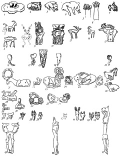 * Рисунки на этих таблицах даны под теми же номерами, что и целые предметы на таблицах 1-45, детали которых они изображают. В скобках дан номер таблицы, на которой предмет изображен целиком.