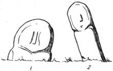 Рис. 7. Алтай. 1 — каменное изваяние № 18; 2 — каменное изваяние № 19. (Открыть Рис. 7 в новом окне) | ||