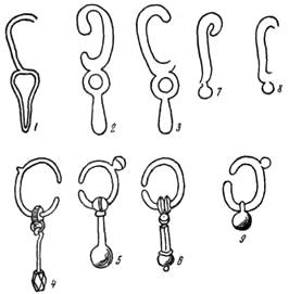 В VII-VIII вв. бытуют лунницеобразные бляхи (пояса из раскопок в Туяхте, Курае и др.). Некоторые из них благодаря тому, что концы блях смыкаются (например, одна из блях Копёнского чаатаса) [55] принимают почти сердцевидную форму, которая в окончательном виде вырабатывается к IX в.