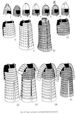 Рис. 6. Типы шлемов и панцирей (реконструкция).