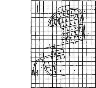 Рис. 55. План-схема жилых сооружений Бискупинского городища.(Открыть Рис. 55 в новом окне) |