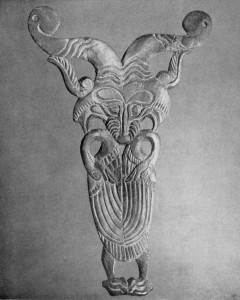 25. Рогатый тигр и гуси. Налобник узды. Кость. Высота 20,5 см. Пазырык 2.
