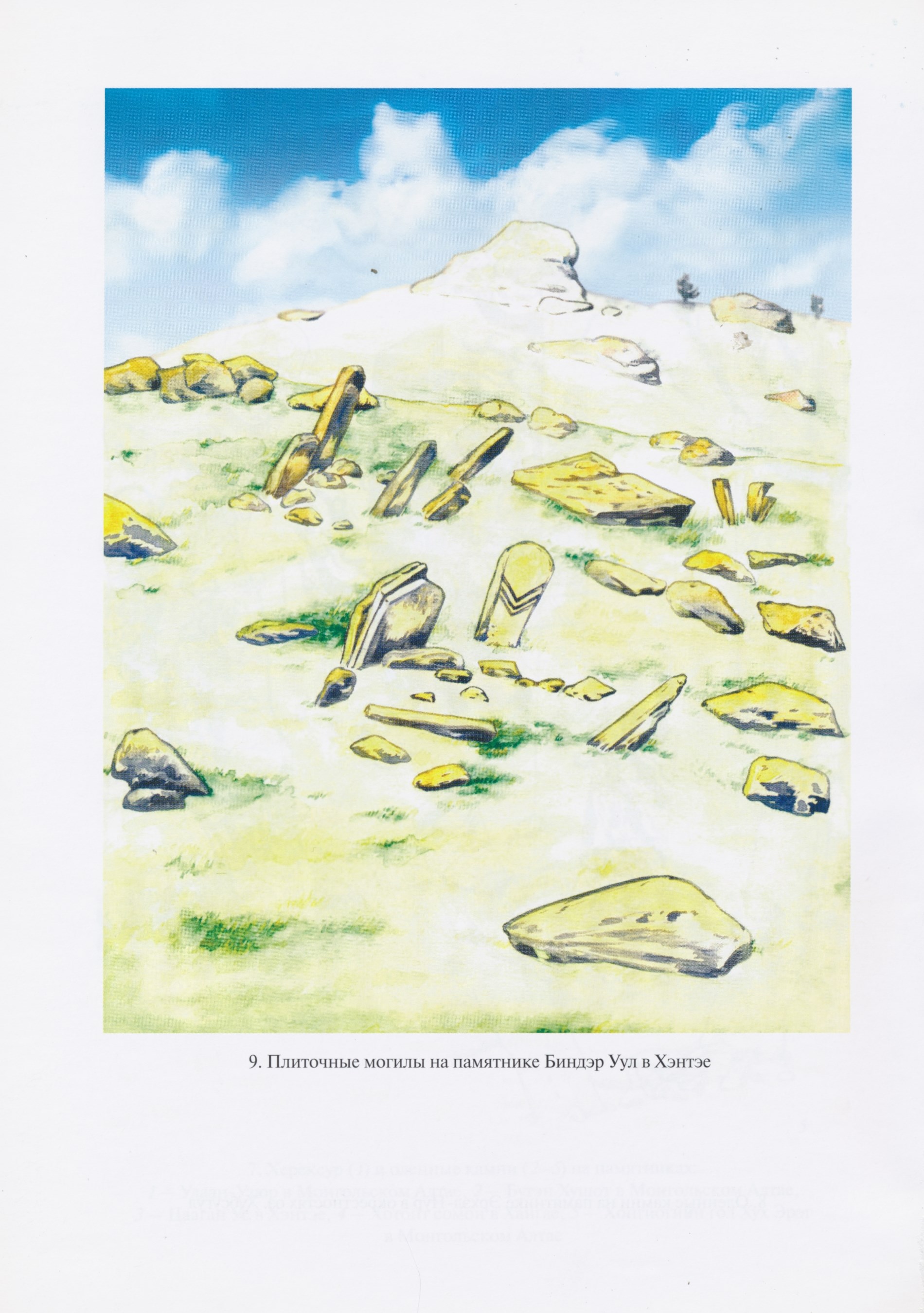 Изучение военного дела древнего скотоводческого населения Центрально-Азиатского региона имеет важное значение для понимания закономерностей этнокультурного и социального развития кочевого мира всего степного пояса Евразии. В погребальных и поминальных комплексах позднего бронзового и раннего железного веков, связанных с культурой херексуров и оленных камней и культурой плиточных могил, находки предметов вооружения встречаются достаточно редко. Для создателей херексуров был характерен безынвентарный погребальный обряд, поэтому предметы вооружения попадали в насыпи херексуров в исключительных случаях [Цэвээндорж, Баяр, Цэрэндагва, Очирхуяг, 2002, тал. 100; Турбат, Амартувшин, Эрдэнэбат, 2003, тал. 163]. Прославлению боевых подвигов умершего воина служила сама монументальная конструкция херексура с высокой центральной насыпью, кольцевой или квадратной оградой и угловыми стелами (цв. вкл. 7, 1). Более значимую информацию о военном деле древних номадов несут изображения на оленных камнях, на которых показаны боевой пояс, щит и различные виды наступательного оружия (цв. вкл. 7, 2-5; 8). В плиточных могилах в состав сопроводительного инвентаря погребённых воинов входило оружие. Однако оно встречается сравнительно редко из-за значительной разграбленности этих могил. Сама конструкция плиточных могил, сооруженных из массивных каменных плит, ограждавших могилу, привела к тому, что многие подобные памятники были ограблены ещё в древности (цв. вкл. 9). В силу определённых обстоятельств накопление вещественных источников, среди которых преобладают случайные находки, распределённые по разным музейным коллекциям, и обращение к разработке этой темы в течение длительного времени были затруднены. Ряд важных научных открытий, совершённых на территории Монголии в течение последних десятилетий монгольскими, российскими исследователями и археологами из других стран, позволил приступить к её реализации и предложить опыт обобщения собранного материала.