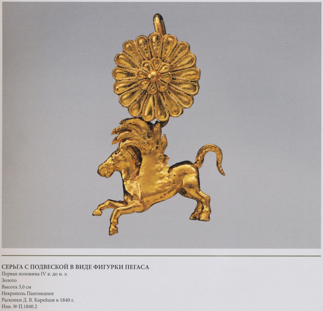 Середина V в. до н.э. Золото. Длина 24,0 см. Таманский полуостров. IV Семибратний курган. Раскопки В.Г. Тизенгаузена в 1876 г. Инв. №СБр.IV.14. (Открыть в новом окне илл. со стр.: 62, 63)