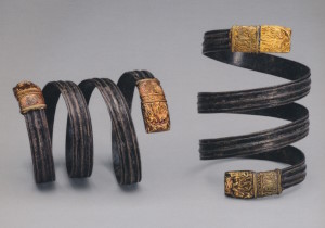 Боспор. Браслет — первая половина IV в. до н.э.; рельефы — вторая четверть V в. до н.э. Золото. Диаметр 10,1 см. Окрестности Керчи. Курган Куль-Оба. Мужское погребение. Раскопки в 1830 г. Инв. №КО.18.