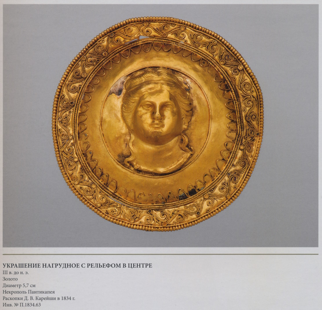 Третья четверть II в. до н.э. Золото, альмандин, стеклянная паста. Диаметр 20,0 см. Таманский полуостров Артюховский курган. Раскопки С.И. Веребрюсова в 1879 г. Инв №Арт.1.