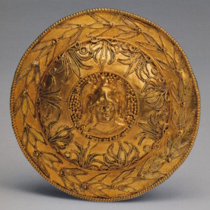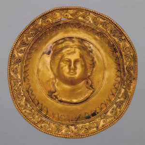 Иония. Вторая половина V в. до н.э. Золото. Диаметр 2,5 см. Некрополь Пантикапея. Раскопки А.Е. Люценко в 1854 г. Инв. №П.1854.26.