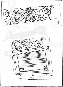 План-реконструкция погребальной камеры из 1-го Пазырыкского кургана, середина V в. до н.э., по М.П. Грязнову, 1941.