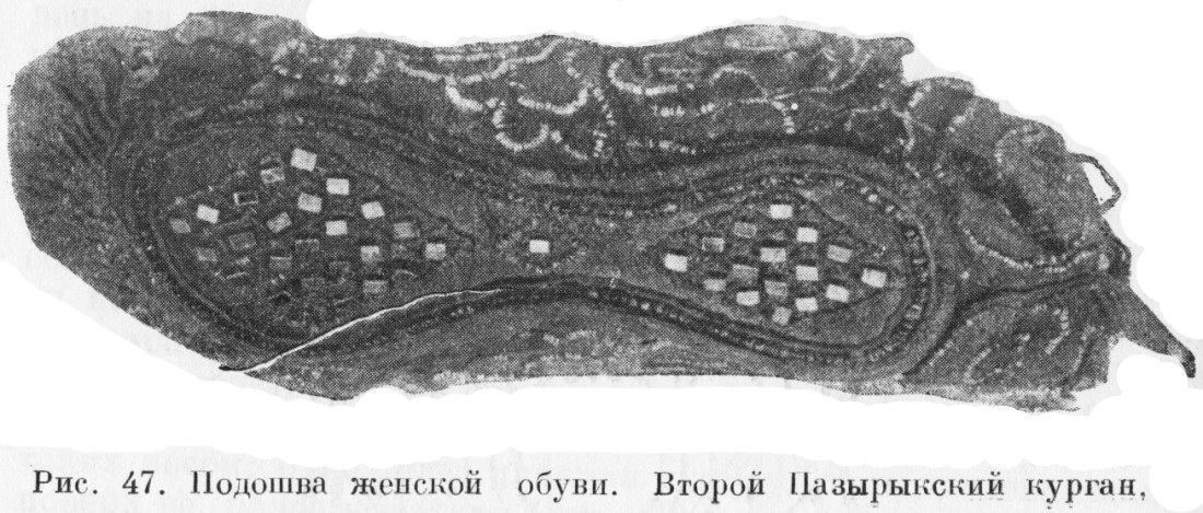 ![]() ^ Подошва женской обуви. Второй Пазырыкский курган. — 106