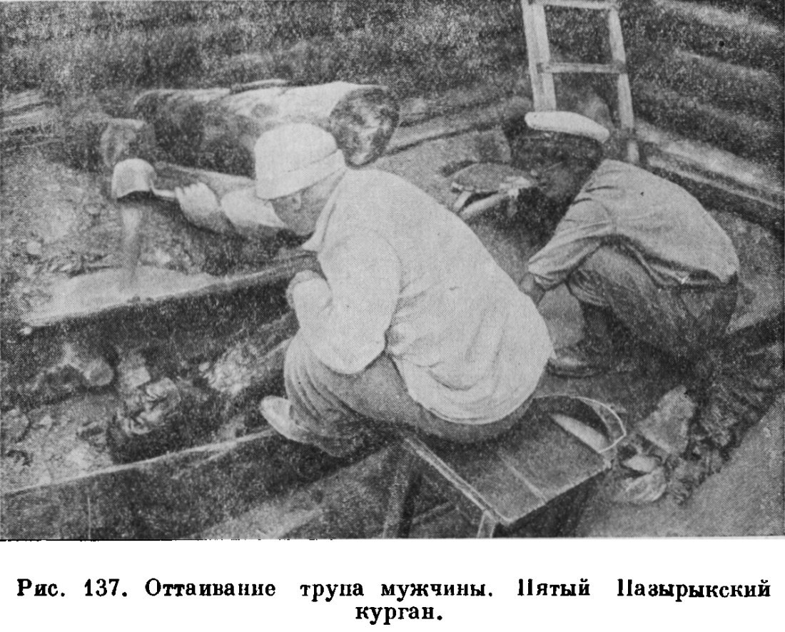 ![]() ^ Оттаивание трупа мужчины. Пятый Пазырыкский курган. — 235