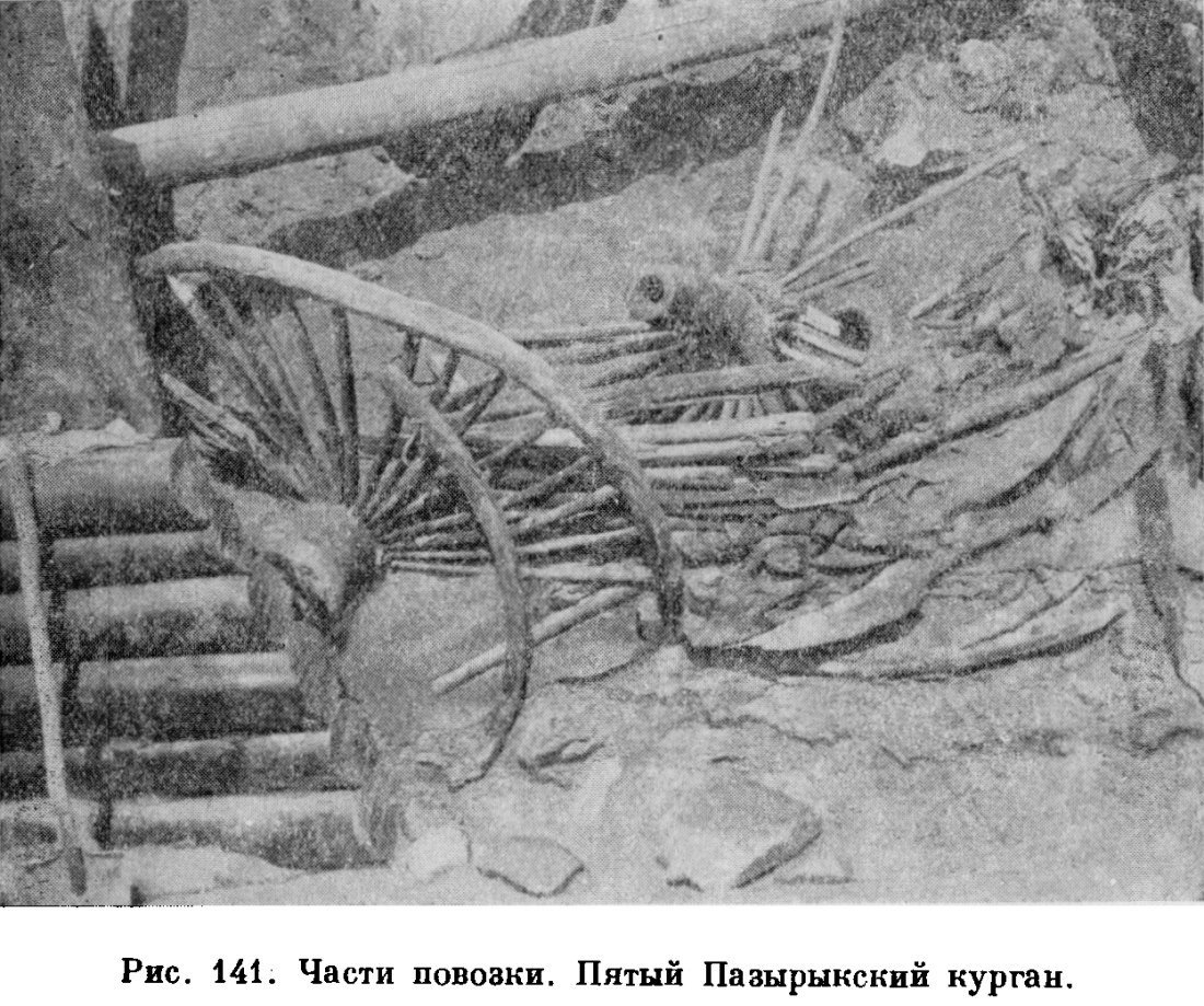 ![]() ^ Ось с колесом телеги. Пятый Пазырыкский курган. — 238