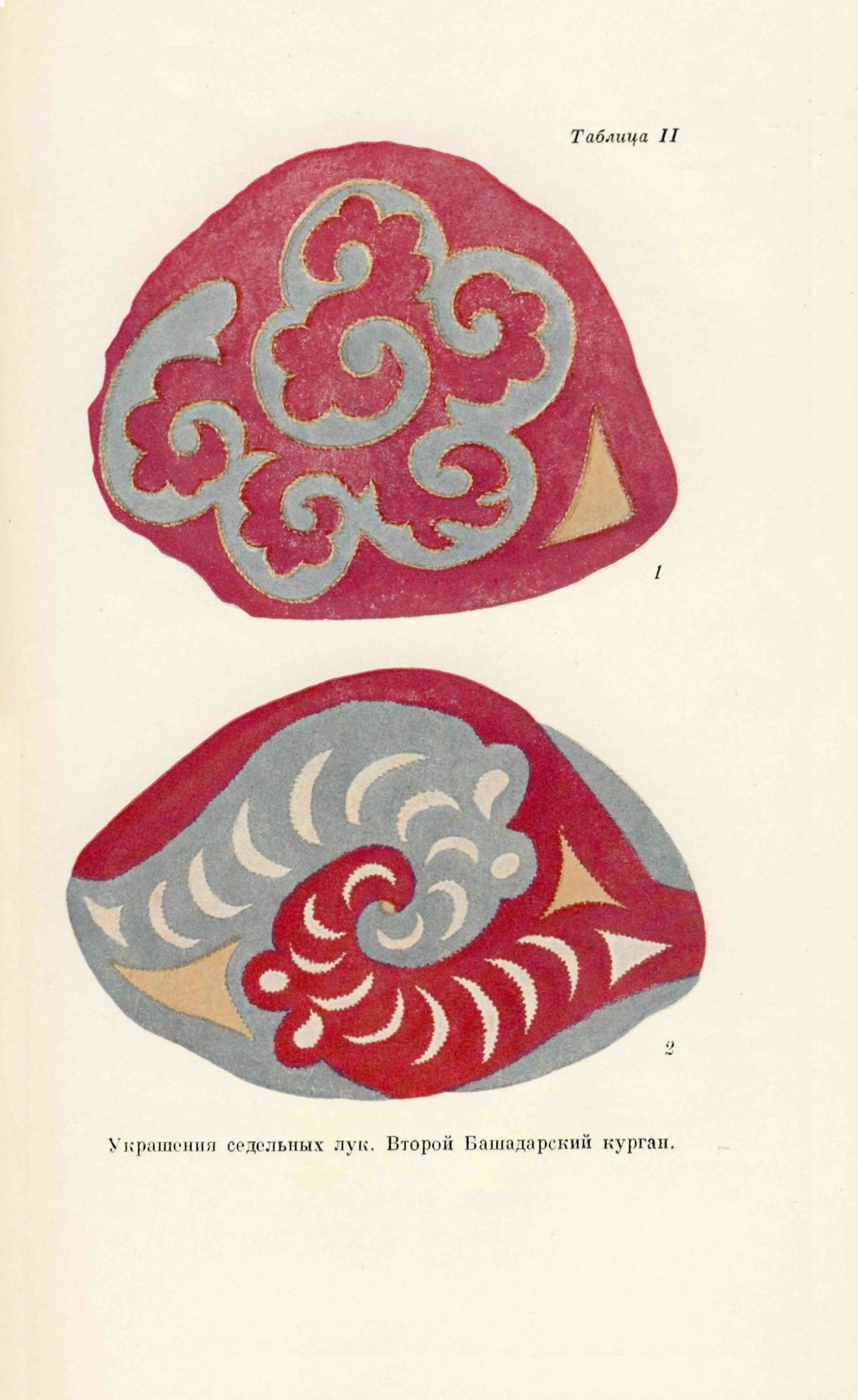 ![]() ^ Украшения конской упряжи. Третий и пятый Пазырыкские курганы. — 183
