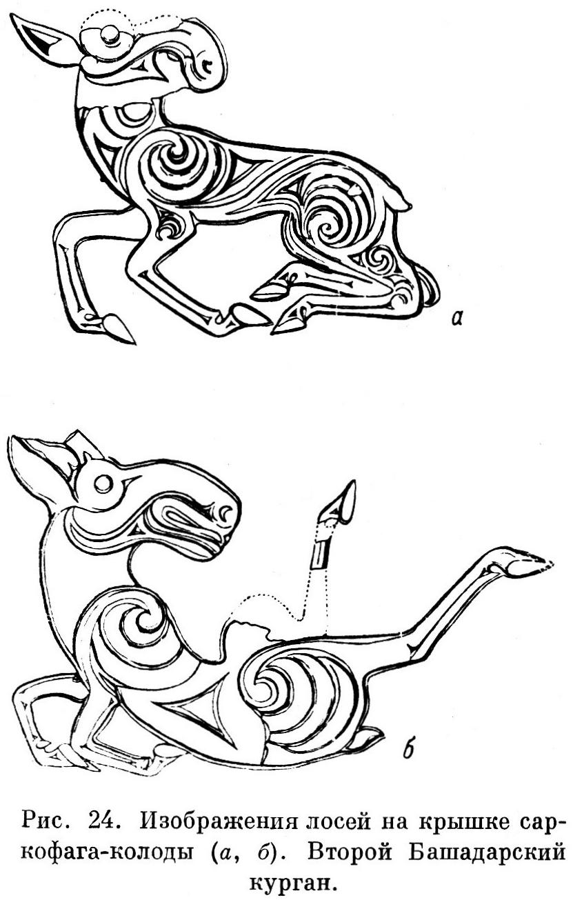 ^ Рис. 24. Изображения лосей. Второй Башадарский курган. — 49(Открыть Рис. 24 в новом окне) |