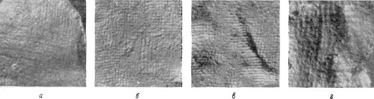 а — табл. XXV, 3; б — табл. XXVI, 1; в — табл. XXV, 1; г — табл. XXV, 5; (увеличение в два раза).