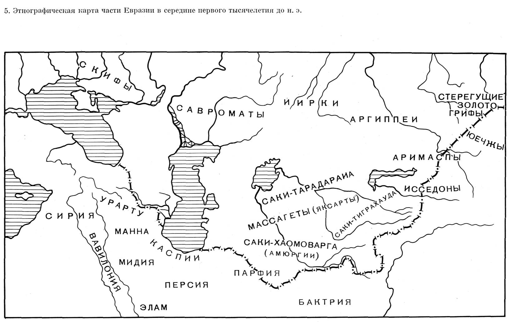 ![]() ^ 5. Этнографическая карта части Евразии в середине первого тысячелетия до н.э.