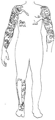 ![]() ^ 10. Татуировка на теле мужчины. Деталь.