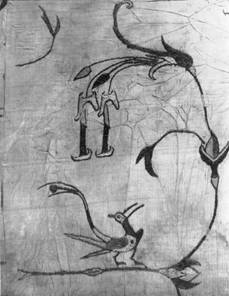 ![]() ^ 104. Орнаменты, основной мотив которых цветок и бутон лотоса. Второй Пазырыкский курган.