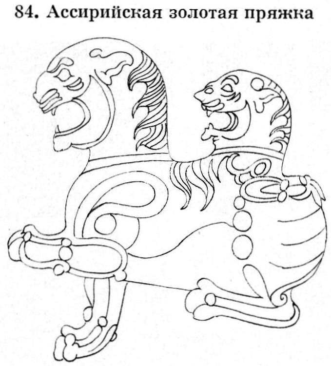![]() ^ 93. Орлиные грифоны, схватившие козла, — украшение плаща Ашшурназирпала. Куюнджик.