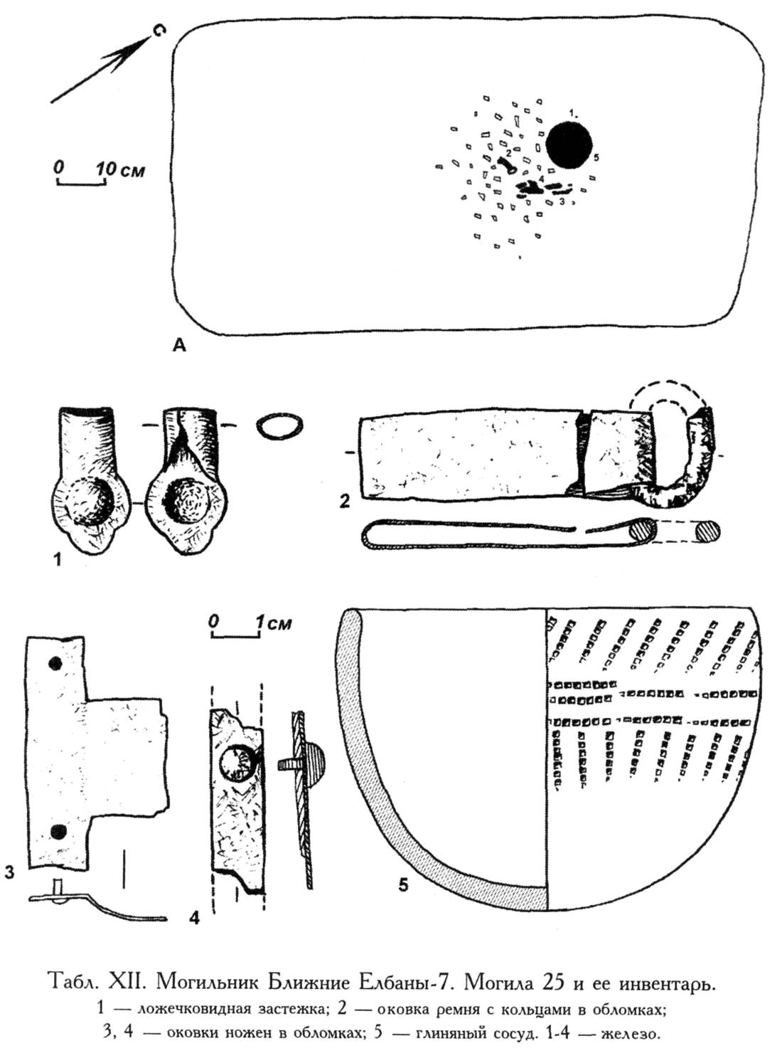 ^ Табл. XII. Могильник Ближние Елбаны-7. Могила 25 и ее инвентарь.