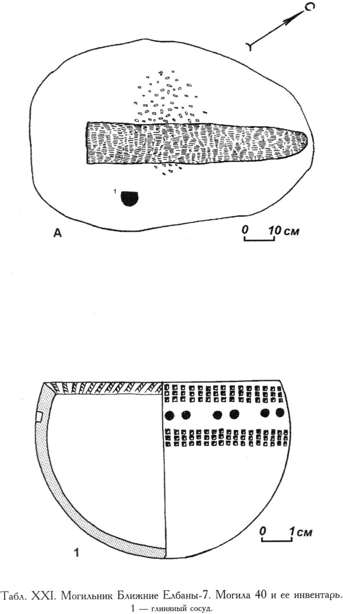 ^ Табл. XXI. Могильник Ближние Елбаны-7. Могила 40 и её инвентарь.