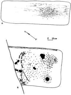 А — расчистка верхнего яруса; Б — расчистка нижнего яруса.