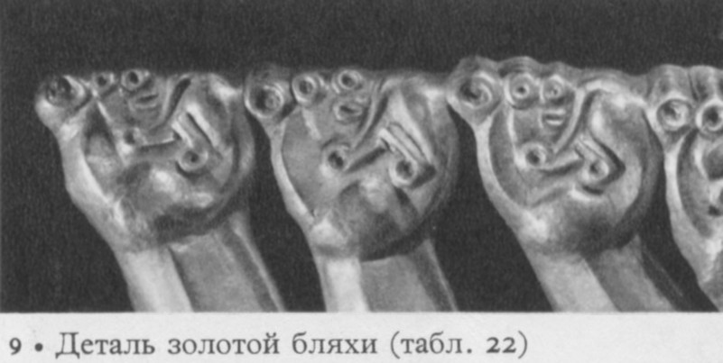 [1] G. Вorovka. Scythian Art. London, 1928, стр. 45; H.Л. Членова. Происхождение и ранняя история племён тагарской культуры. М., 1967, стр. 118.