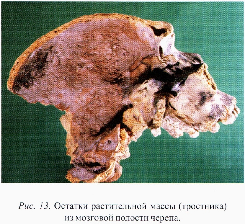 Рис. 13. Остатки растительной массы (тростника) из мозговой полости черепа.(Открыть Рис. 13 в новом окне) |