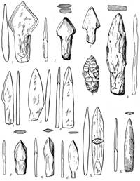 Рис. I. Неолит. Оббитые каменные орудия из обсидиана (Хван Ги Док, 1957).