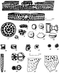 ^   Таблица 47. 1-11 — вещи из погребения 2, курган 8 в урочище Кубей; 12-21 — вещи из разрушенного погребения у с. Казаклея в Молдавии.