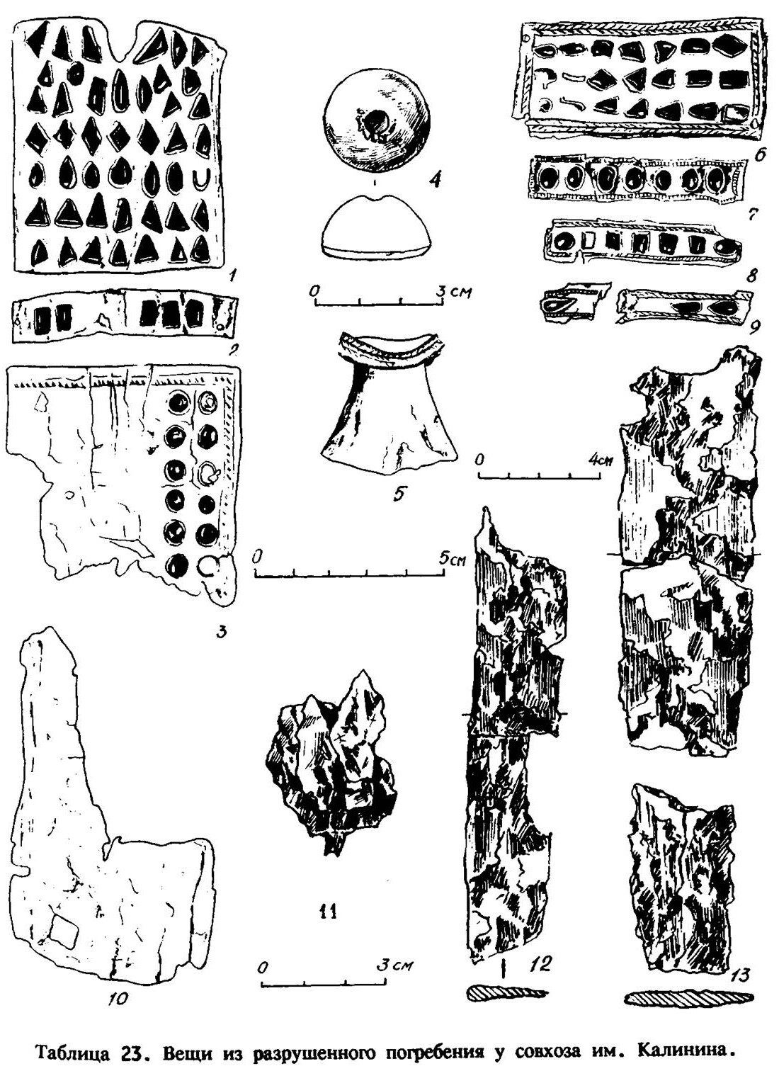 ^   Таблица 23. Вещи из разрушенного погребения у совхоза им. Калинина.