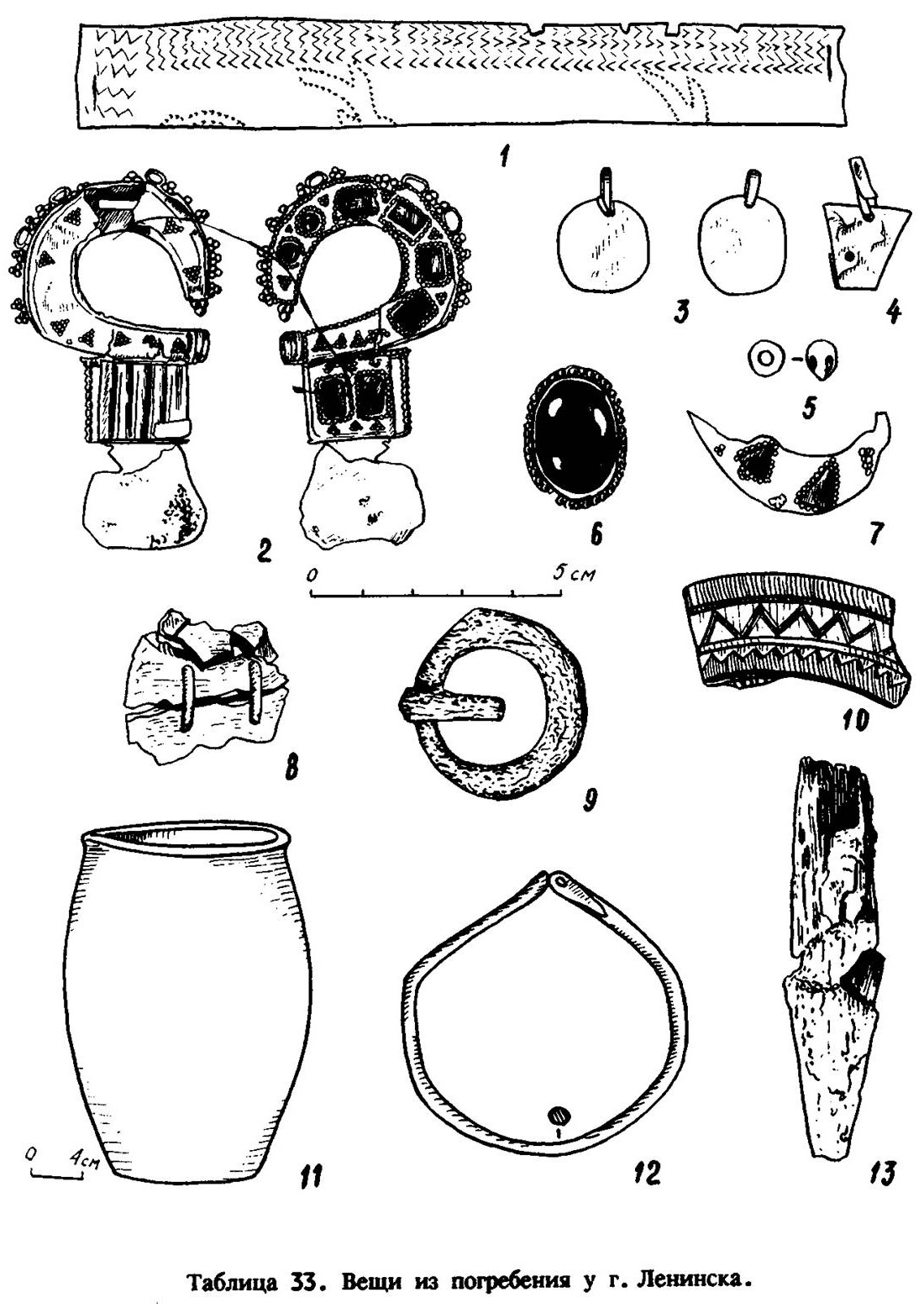 ^   Таблица 33. Вещи из погребения у г. Ленинска.