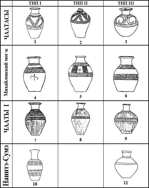 Выделяются три типа, каждый из которых имеет частичные соответствия среди ваз, найденных за пределами Тувы (Рис.37):
